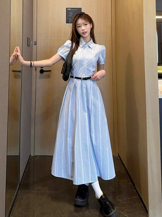 French Style Elegant Blue Color Super Beautiful Slimming Summer2025New style shirt dress