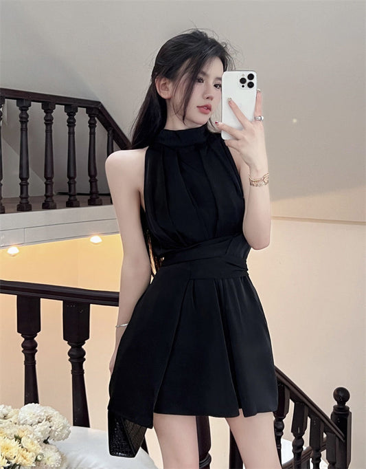 High-End Sleeveless Dress for Women, Summer Off-Shoulder Sexy Socialite Style, Waist-Cinching Tie Short Dress