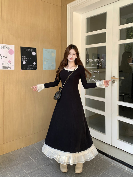 New Elegant Lace Patchwork Waist Slimming Long Dress