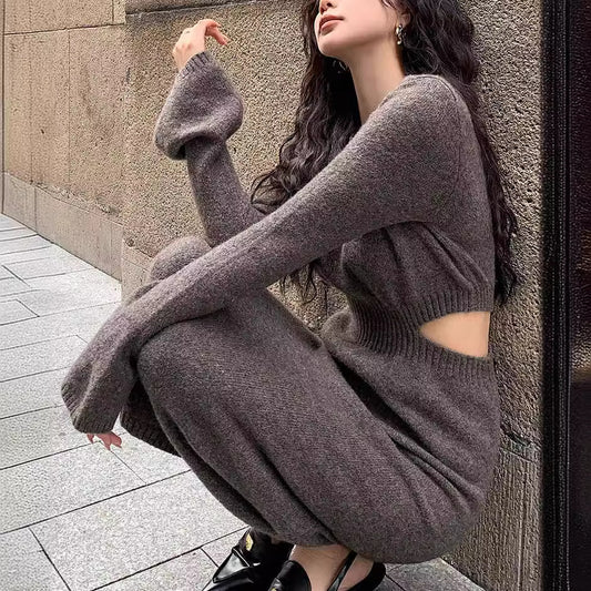 Knitted Dress Base Layer Autumn Winter Women Slim Waist High-End Small Petite Chic Style Bodycon Sweater Dress