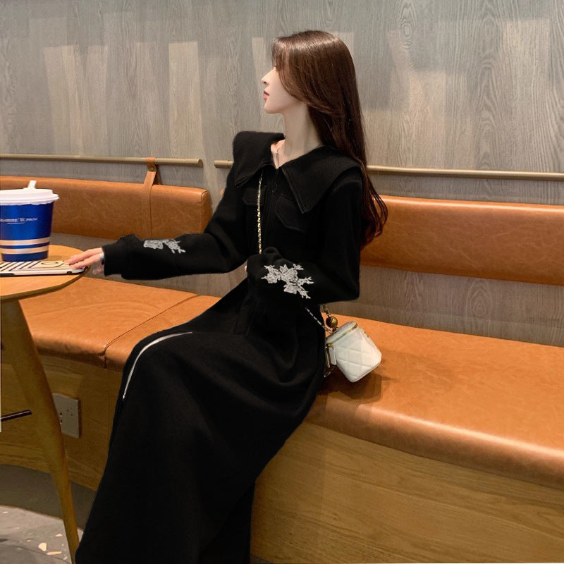 Gray Sweatshirt Dress for Women, Spring and Autumn Fashionable and Stylish, Youthful and Elegant Turn-down Collar Casual Dress